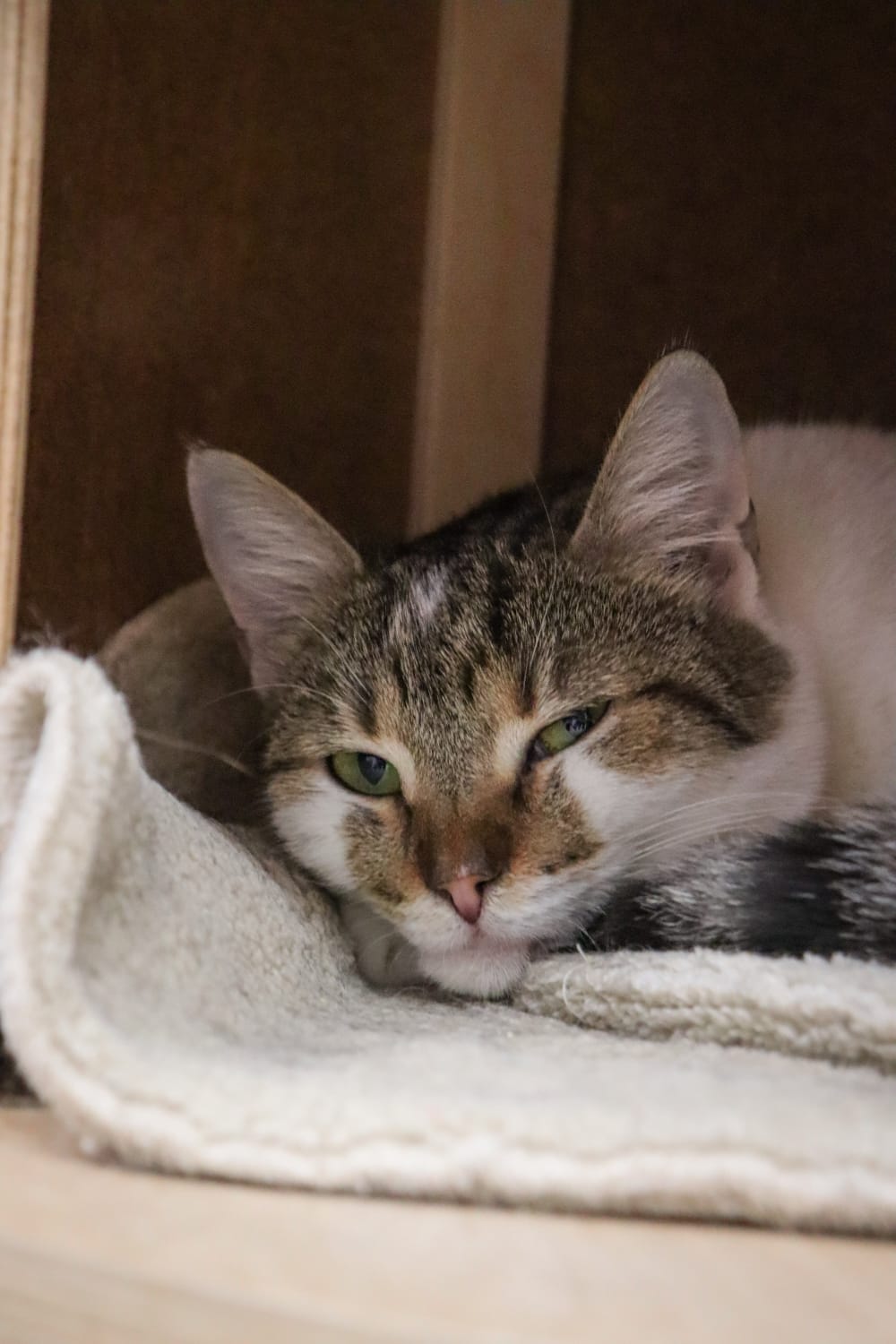 Doris jako kotě vyrůstala s mnoha dalšími kočičkami u narkomanů bez domova. Po odchytu se u všech projevila panleukopenie. Doris ji po dlouhé hospitalizaci zvládla.