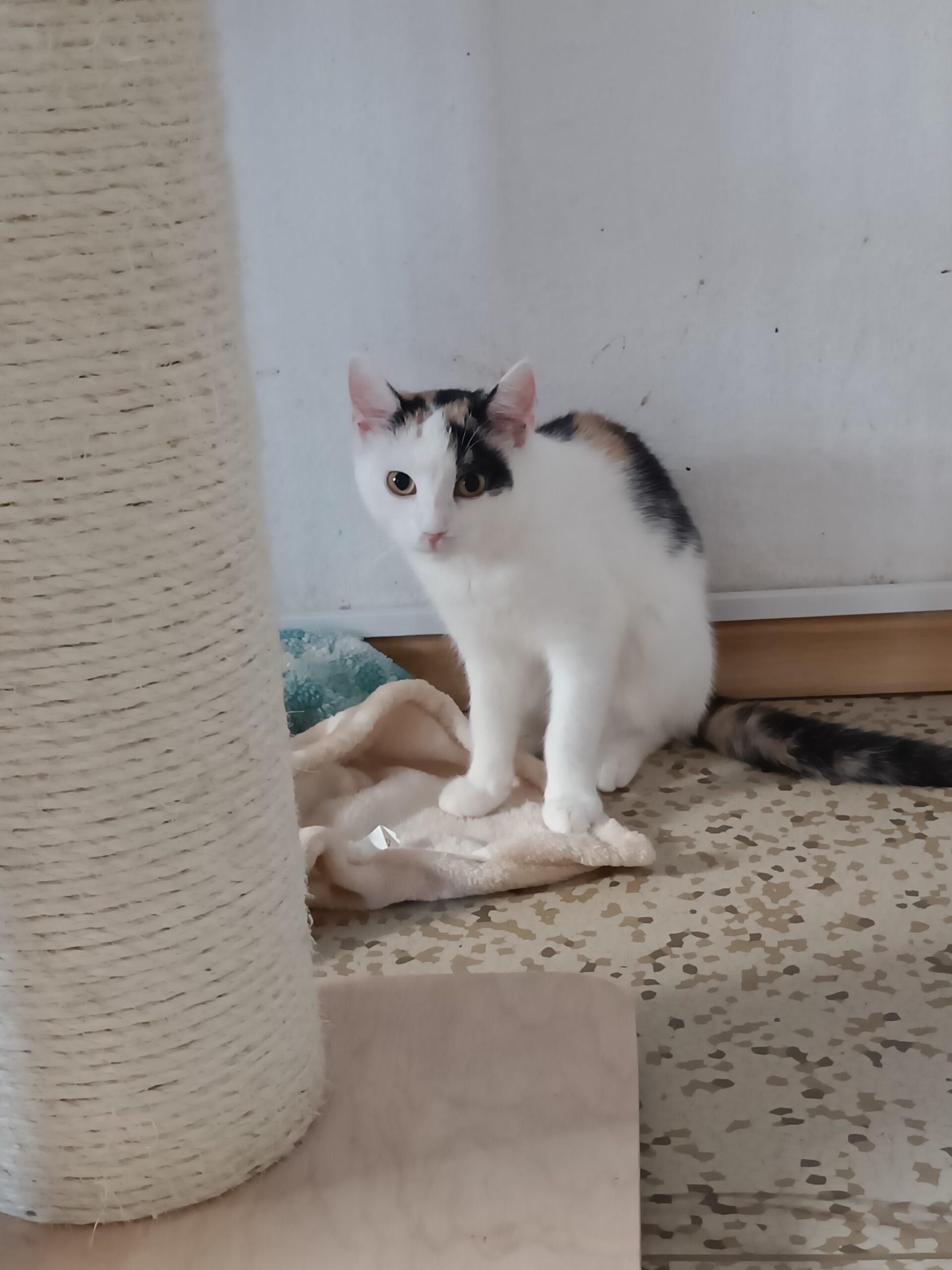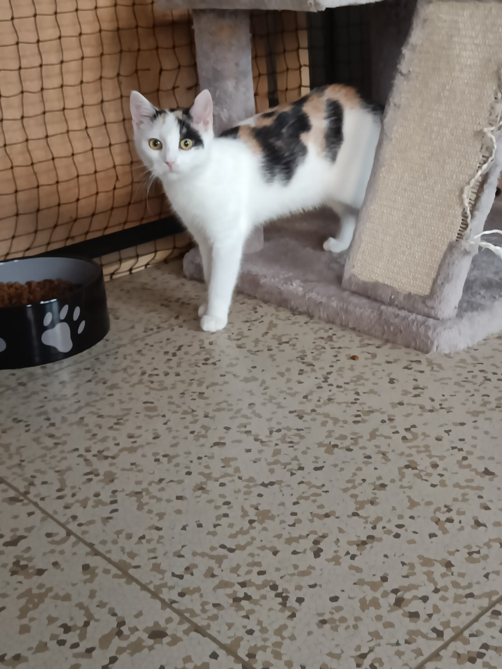 Protože od nás Trixie očekává léky, není tak kontaktní a spíš čeká, že když jdeme k ní, tak dostane prášek, což se ji vůbec nelíbí. Od ukončení léčby se ale uklidnila a my čekáme, že z ní jednou bude hodná a mazlivá kočička.