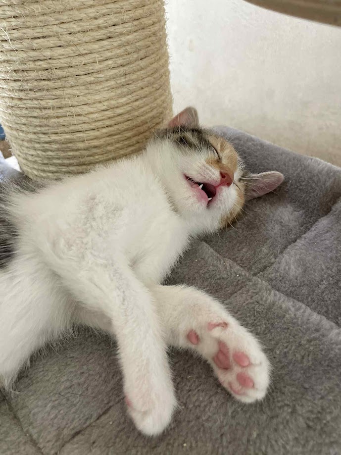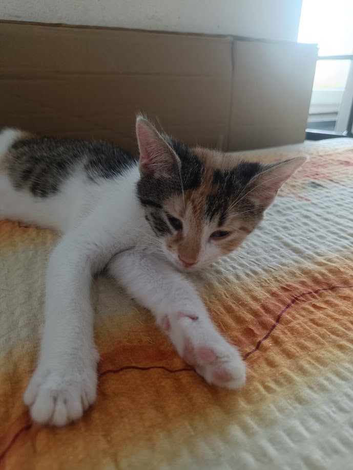 Malinkatá Ejmy se narodila u nás na depozitu kočičce Eli, která byla nalezena březí v Karviné. Je jednou ze čtyř sourozenců.