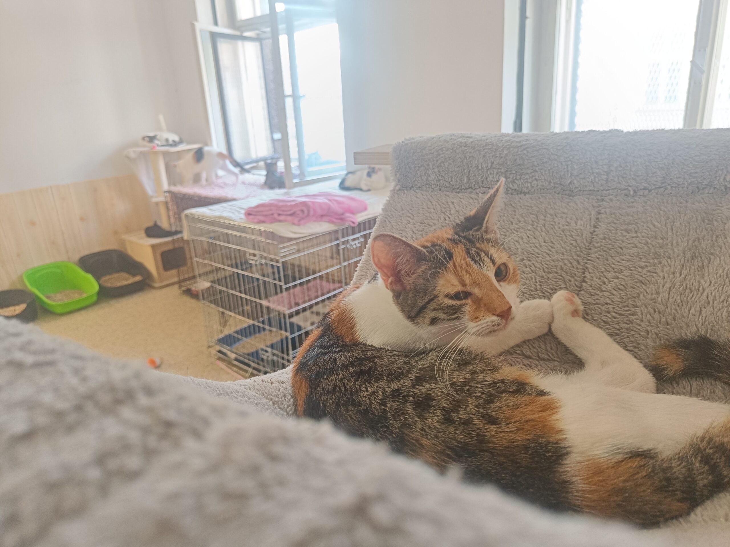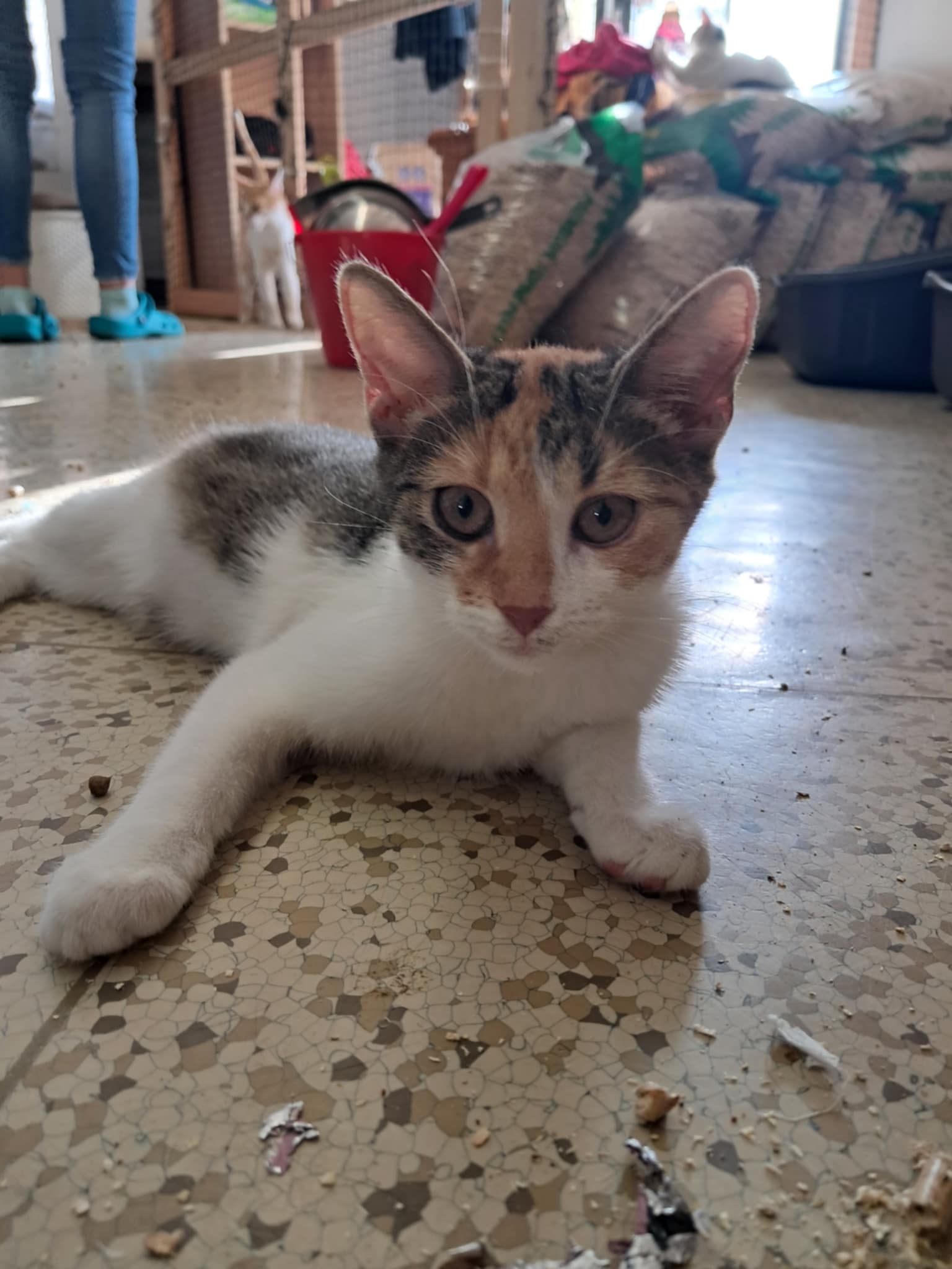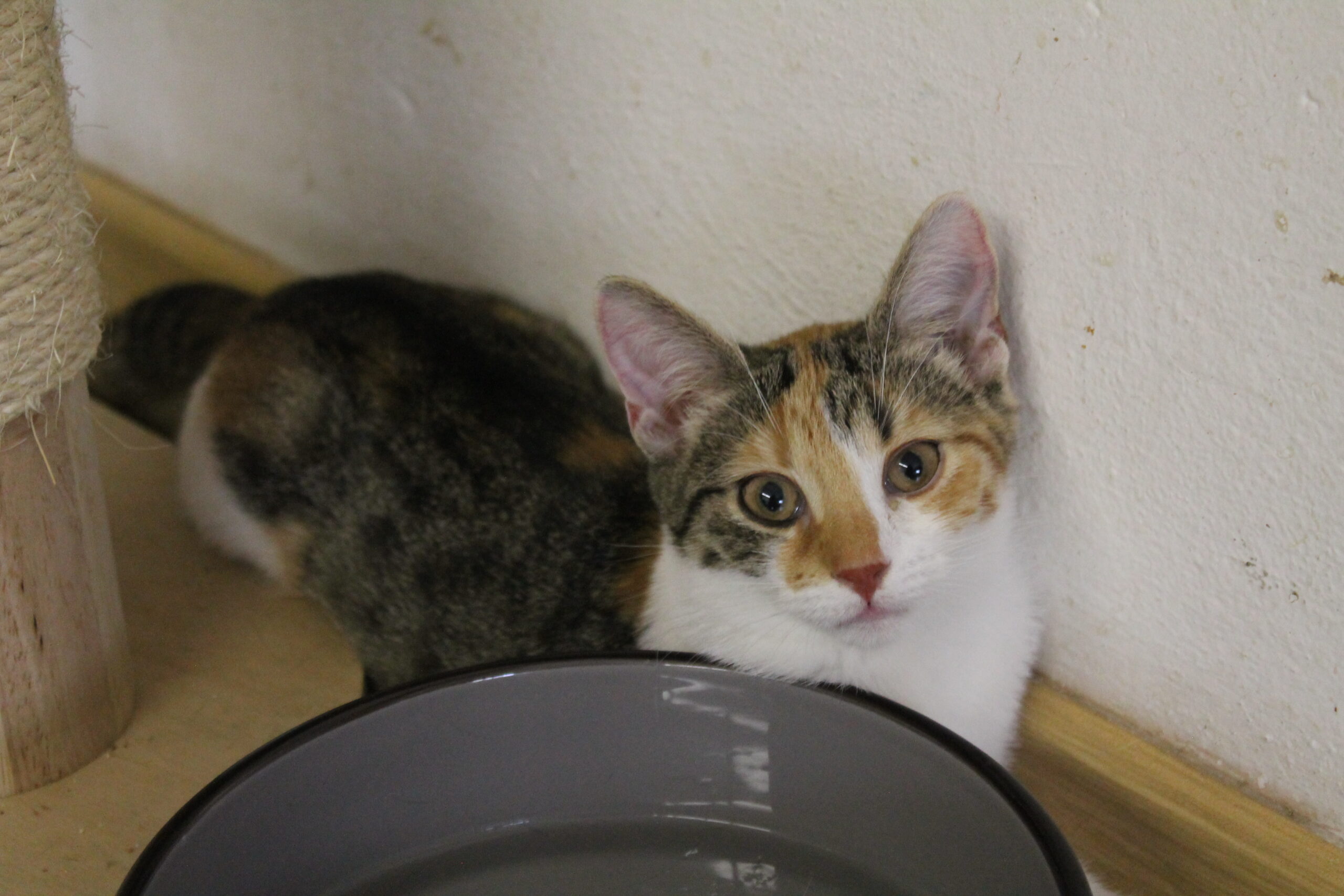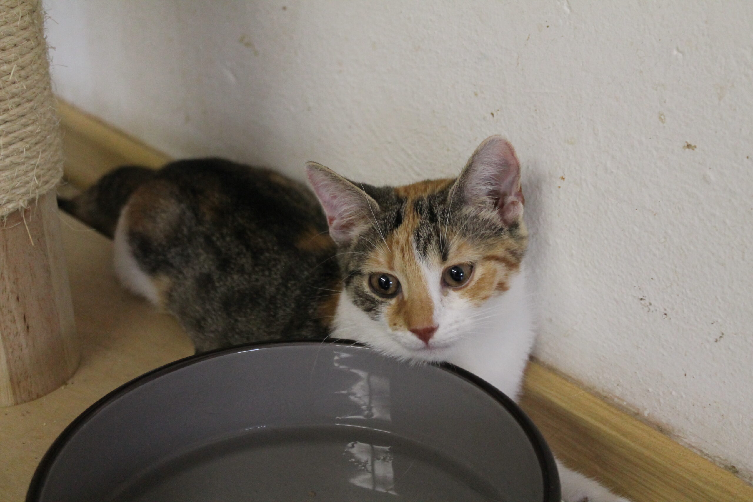 Je velmi aktivní a vše po pokoji prozkoumává.  Hraje si se sourozenci i s dalšími koťaty. Zpočátku byla ze všeho naježená, ale rychle si zvykla na volnost a teď si vše užívá.