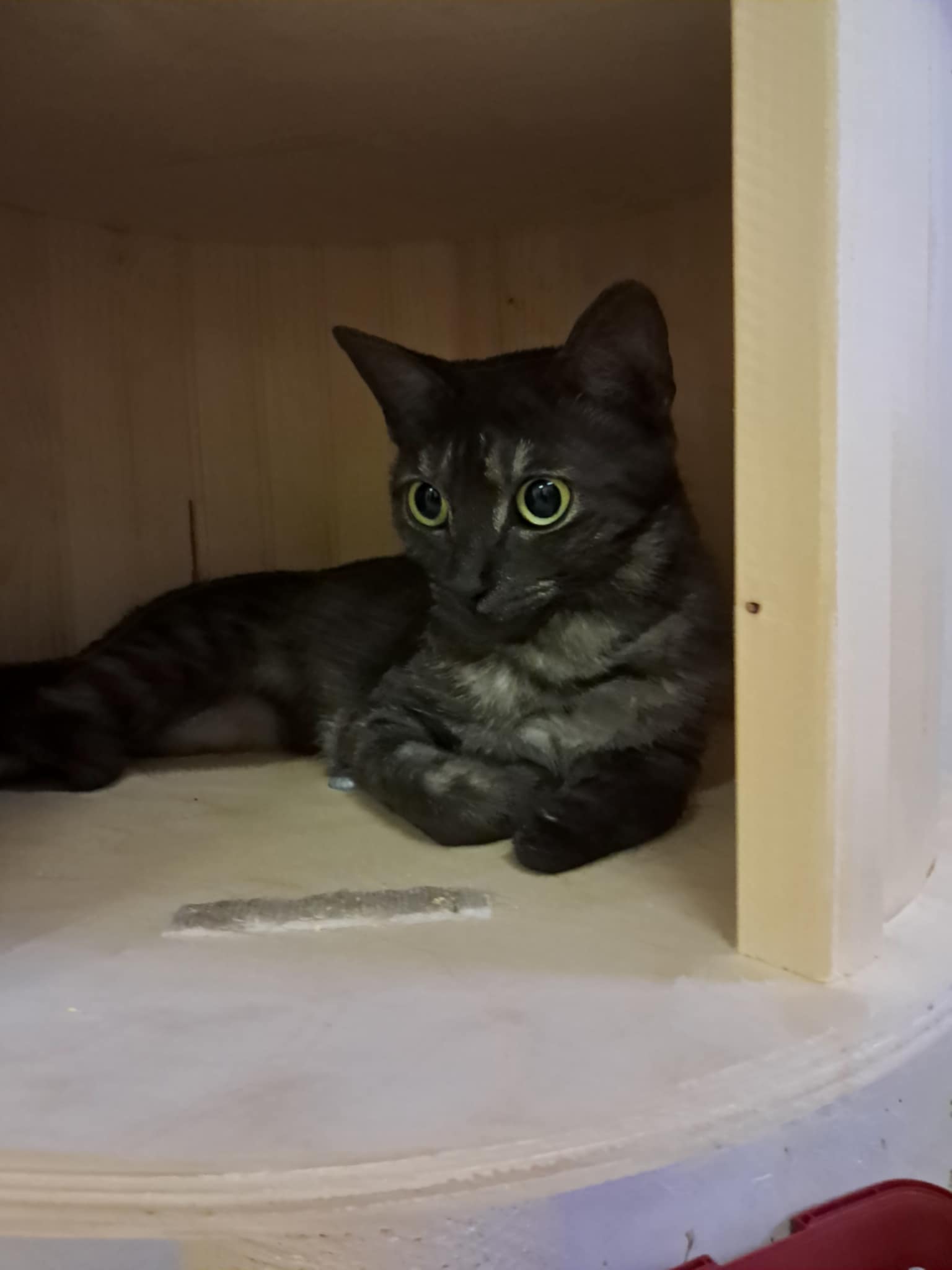 Nyní 09/25: Co koťata vyrostla, Sisinka se lidem začala spíše stranit. Pohladit se nenechá, moc nás nenechá ani přiblížit se. Je zvědavá, je hodná, ale zájemce, který by si ji chtěl vzít, tka musí pochopit, že je to kočička z venku a že nejspíš mazlík nebude. Bude dobrým společníkem, a pokud si s ní vytvoří pouto, bude mu věřit. Ale jestli někdy bude spinkat vedle svého člověka na posteli… to nemůžeme říct.