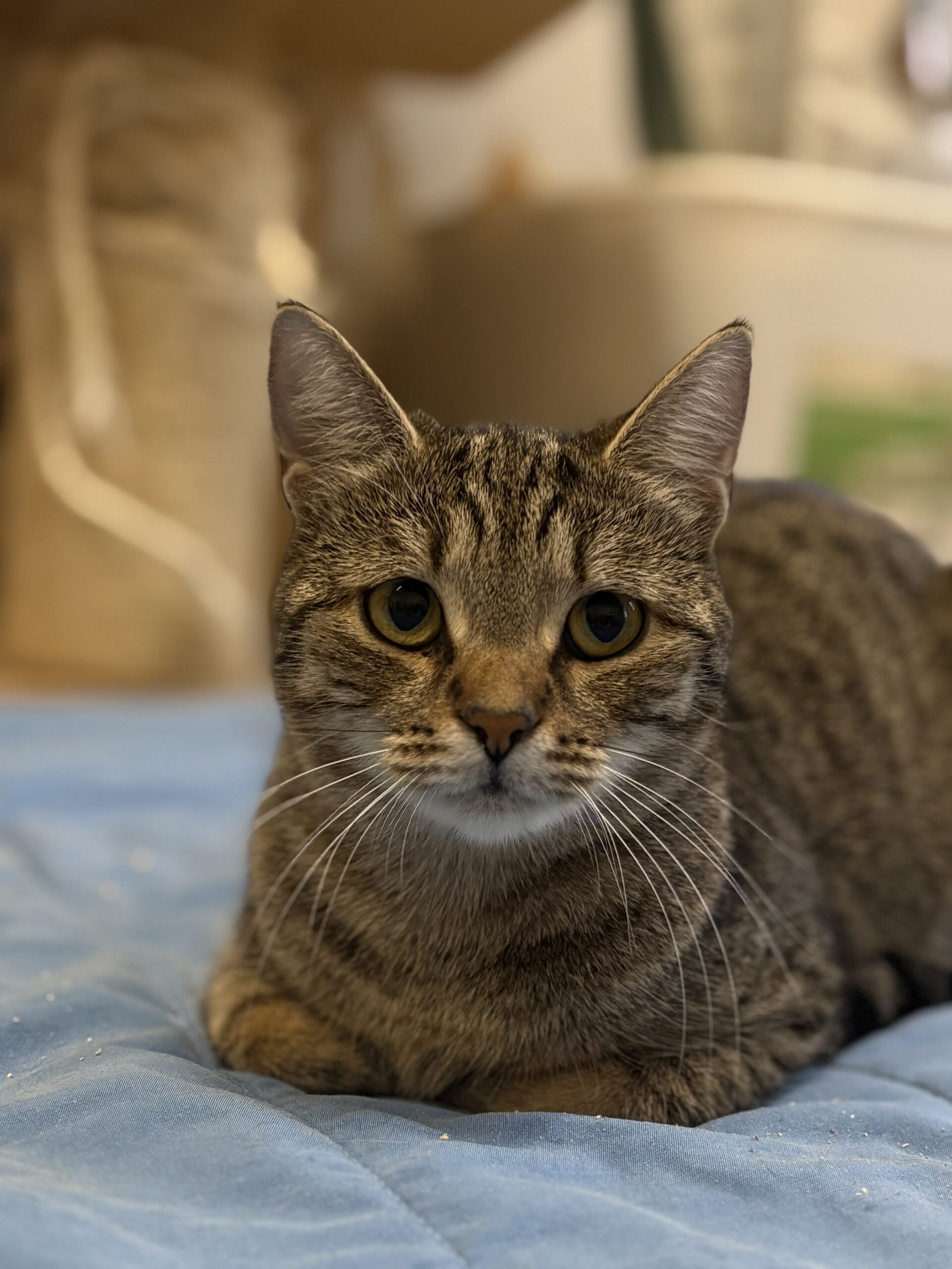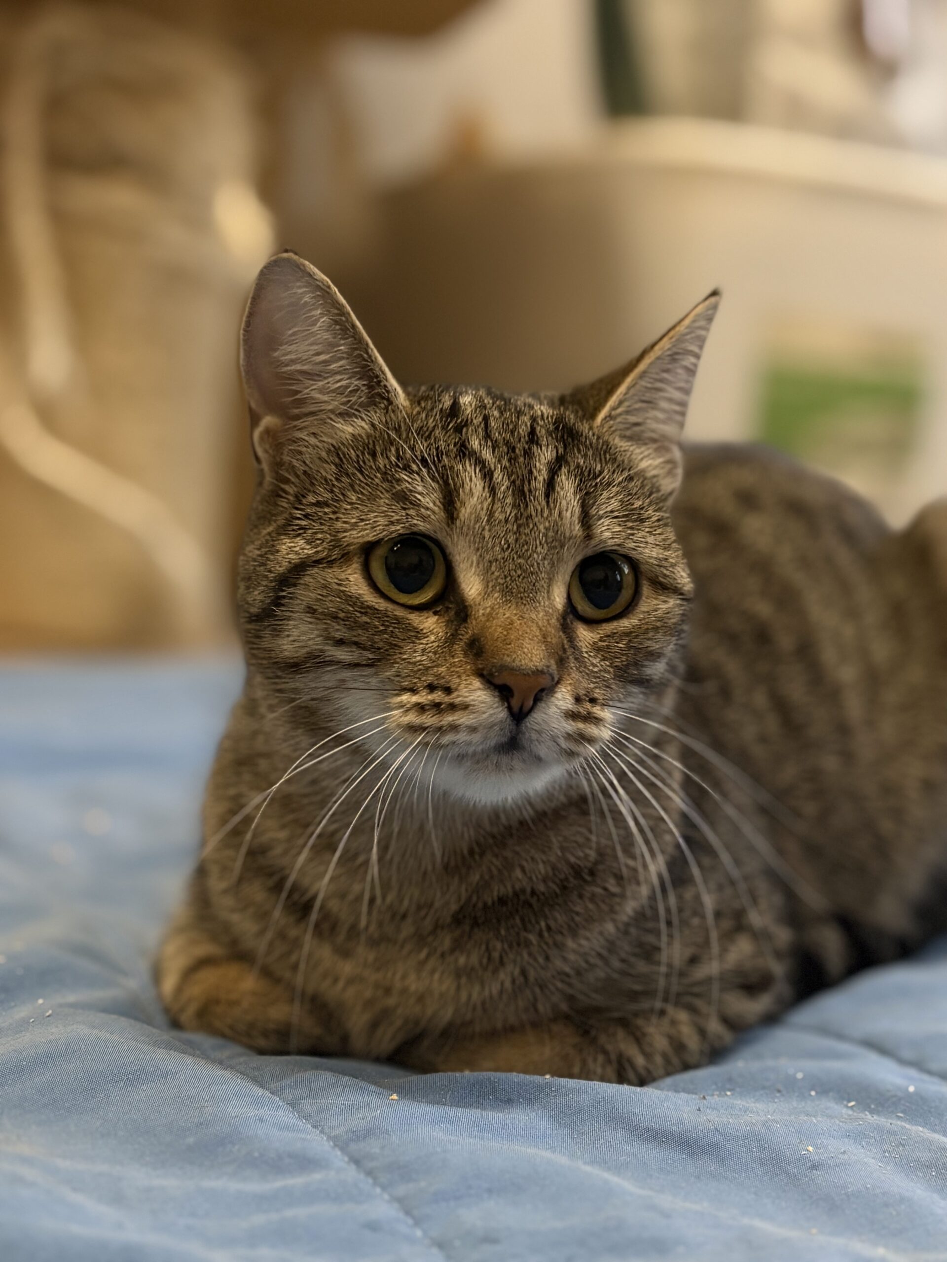 Jako maminka byla hodně ochranářská, ke koťatům nás moc nechce pouštět. Ale jinak se o ně moc nestarala. Koťata papala jen, když se sama připlazila k mamince.
