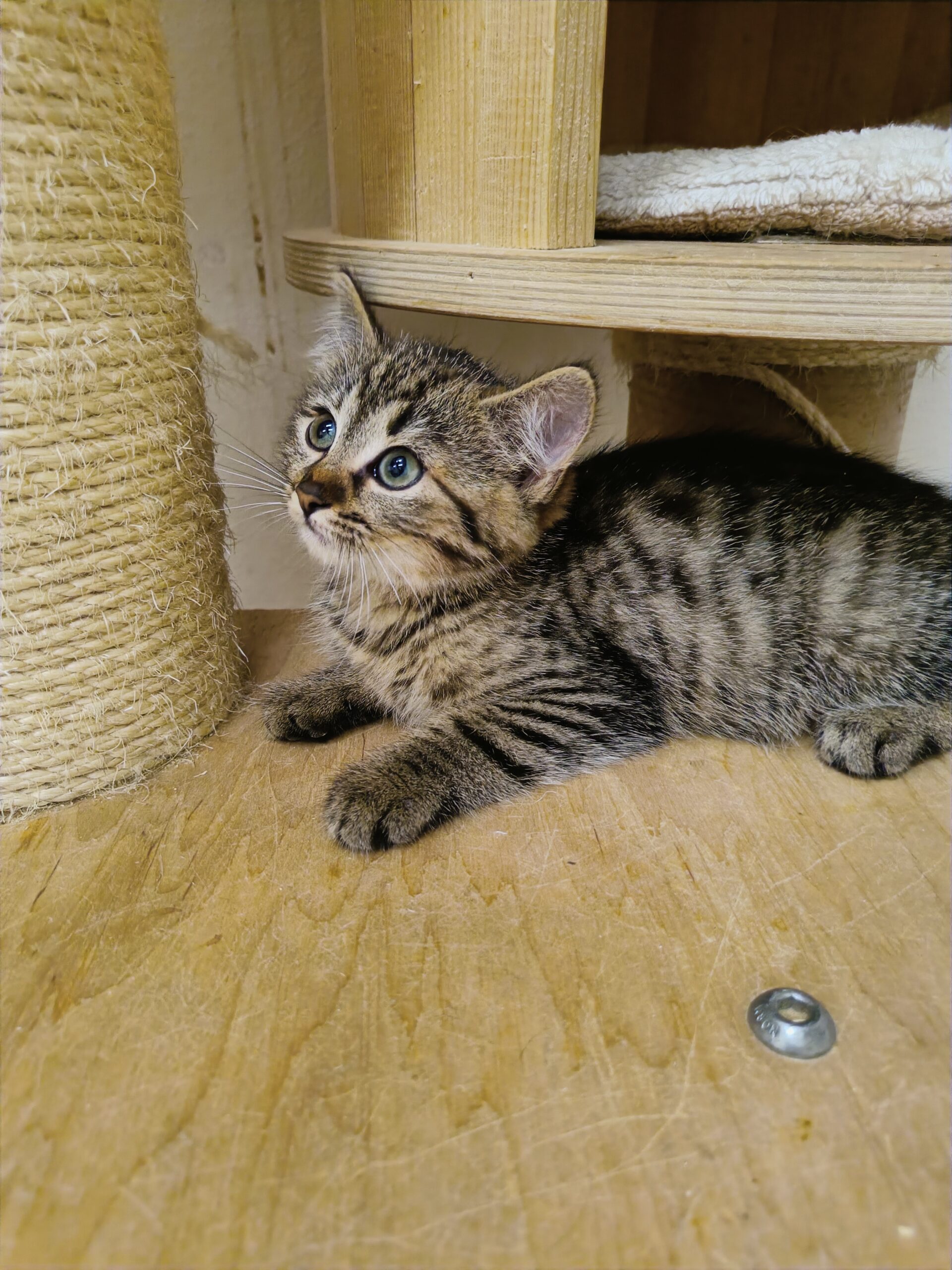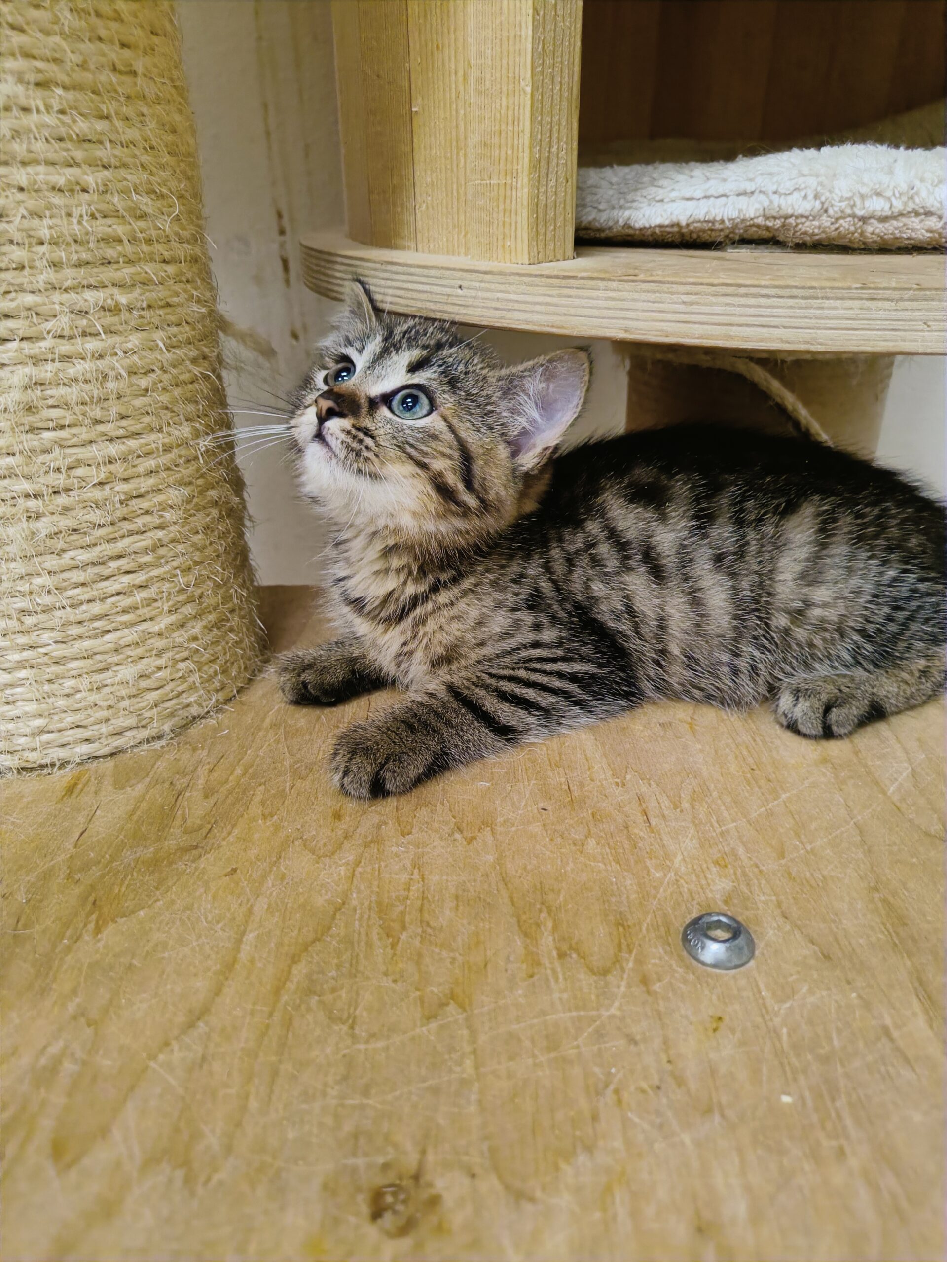 Koťátka se teprve učí, že se bát nemusí. Někteří to poznali rychle, jiným to jde pomaleji. Lottynka je jedna z mazlivějších koťat.